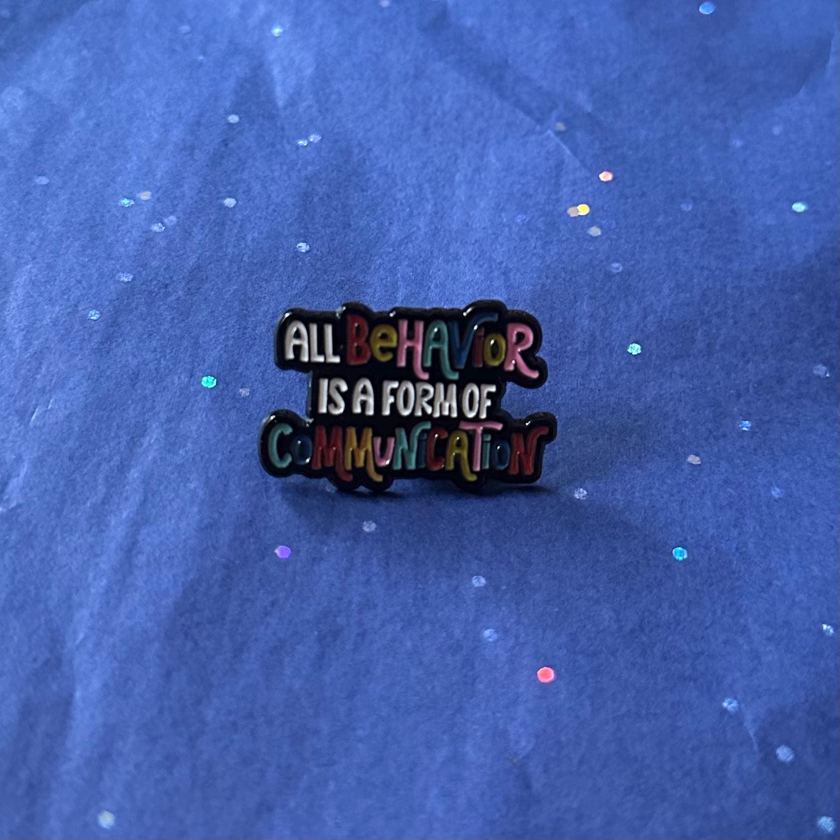 'all behavior is a form of communication' enamel pin, perfect for putting on jackets, lanyards and bags