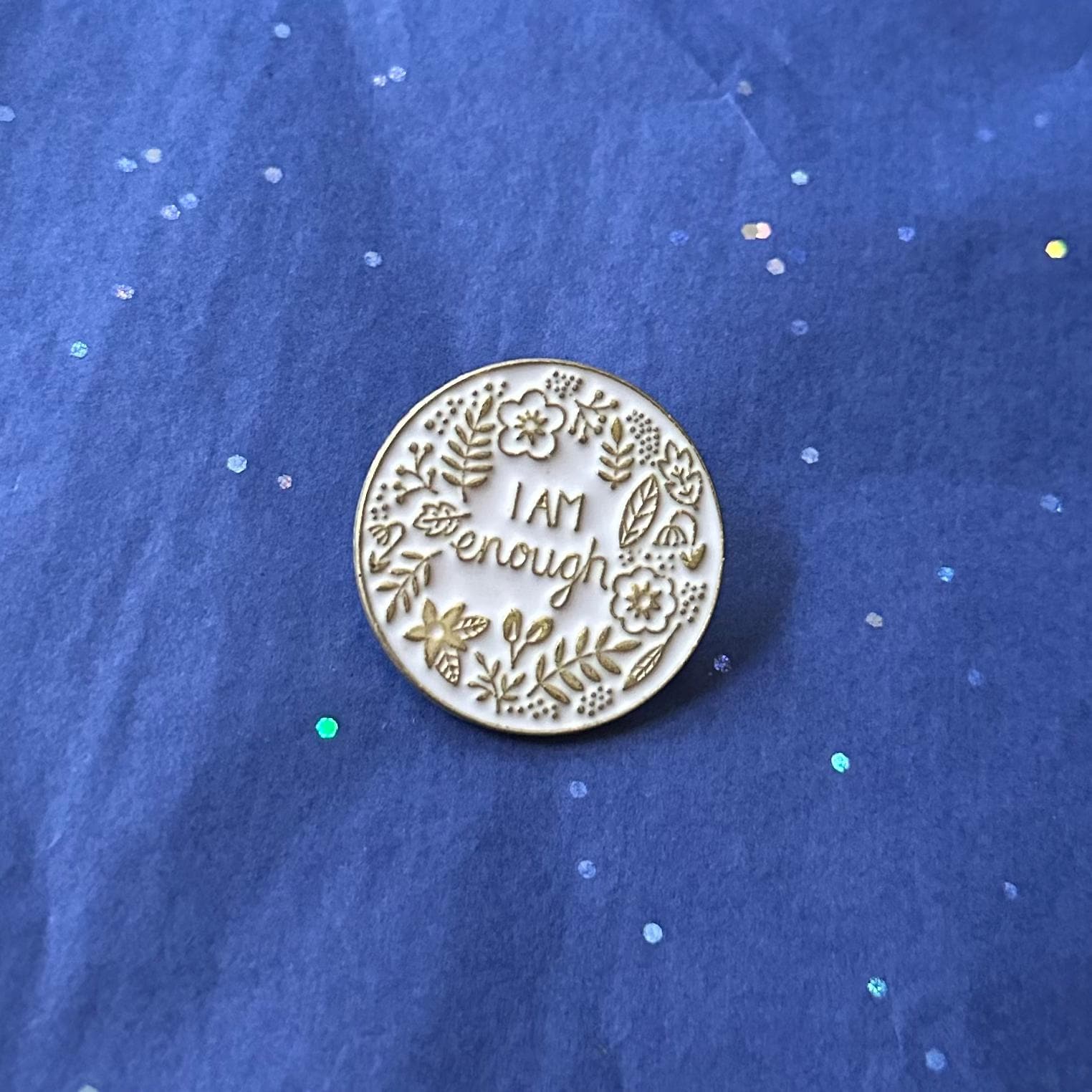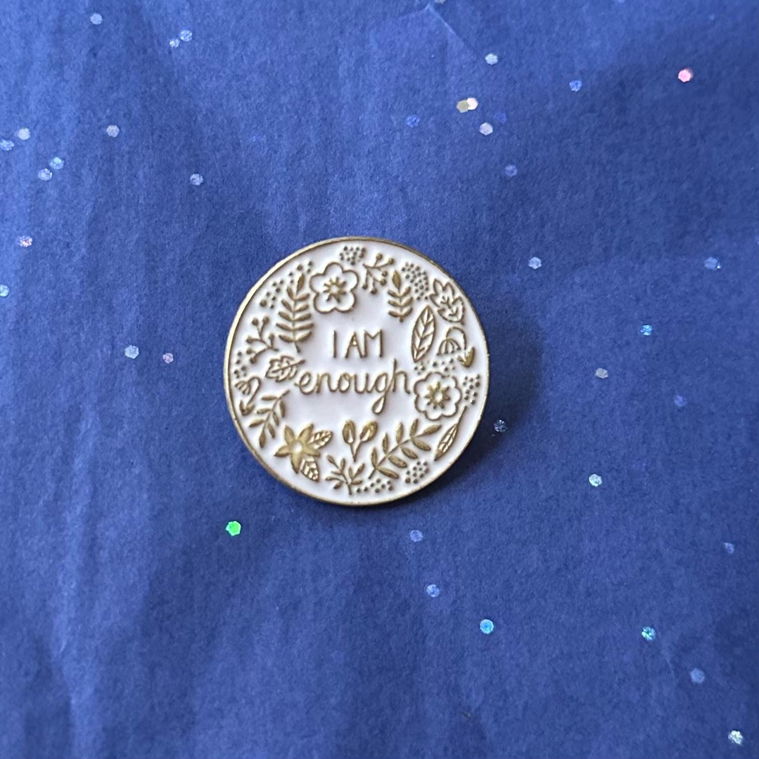 'I Am Enough' enamel pin, perfect for putting on jackets, lanyards and bags