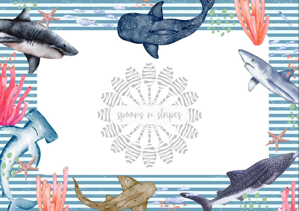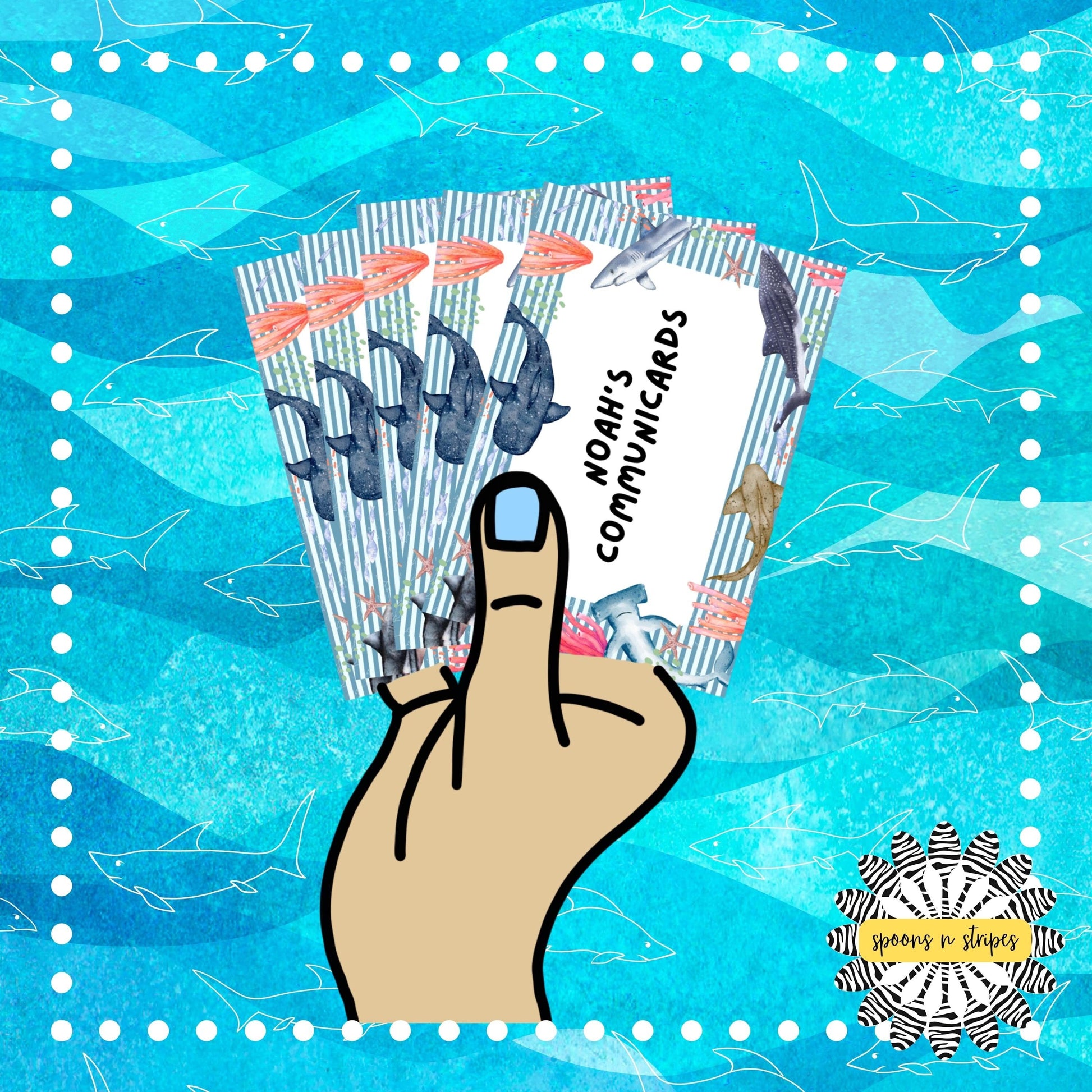 21 beautiful shark-themed communication cards for adults and children who struggle with communication.